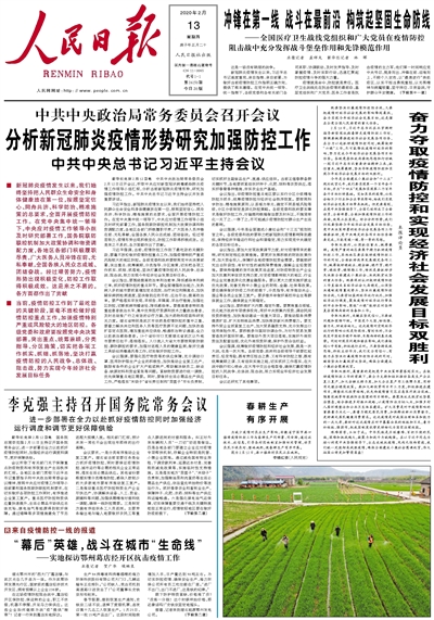 《 人民日?qǐng)?bào) 》( 2020年02月13日 01 版)