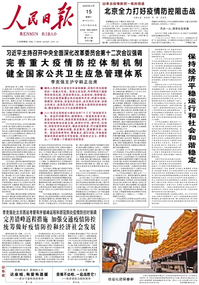 《 人民日?qǐng)?bào) 》( 2020年02月15日 01 版)